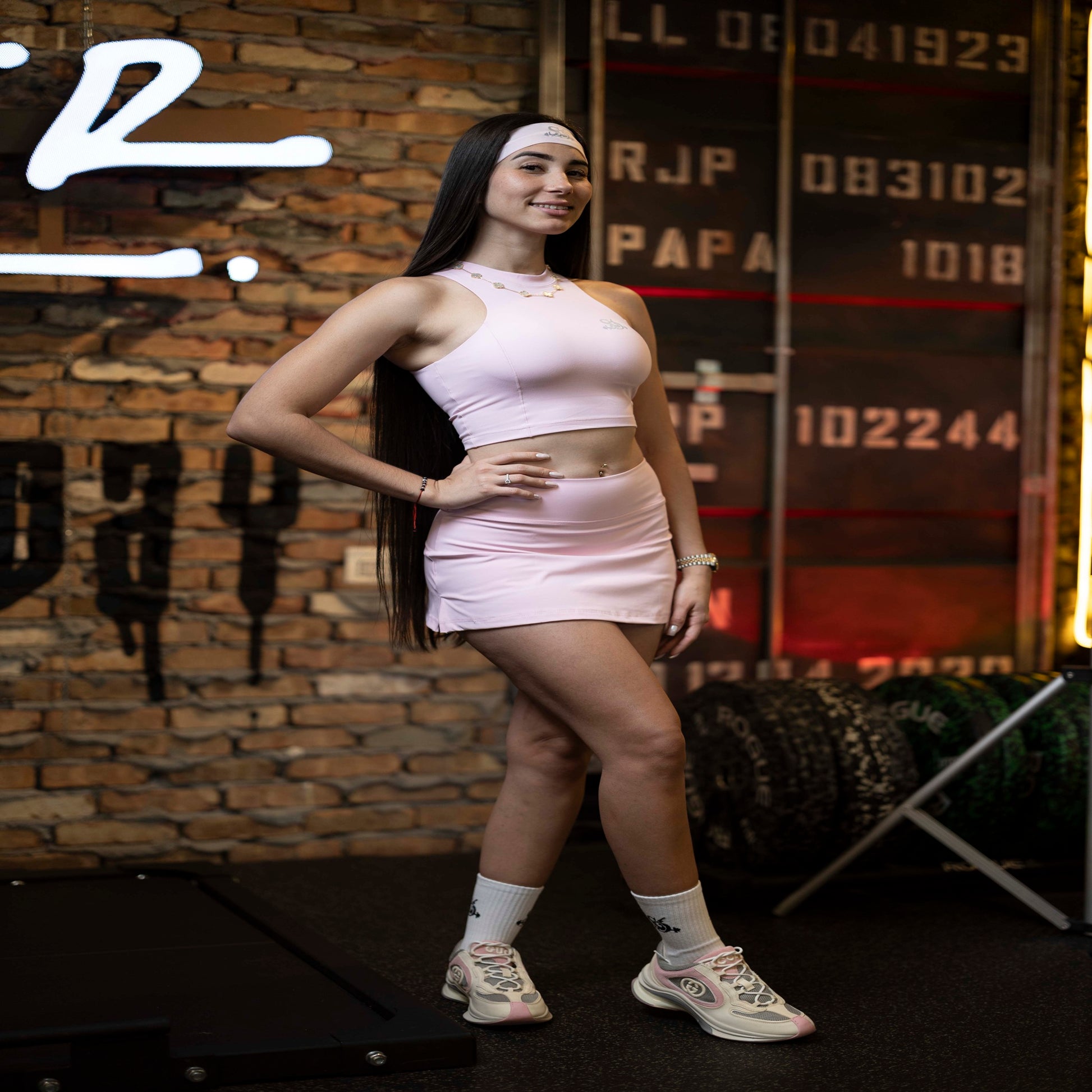Entrena con estilo y comodidad con este conjunto deportivo en tono rosa pastel.