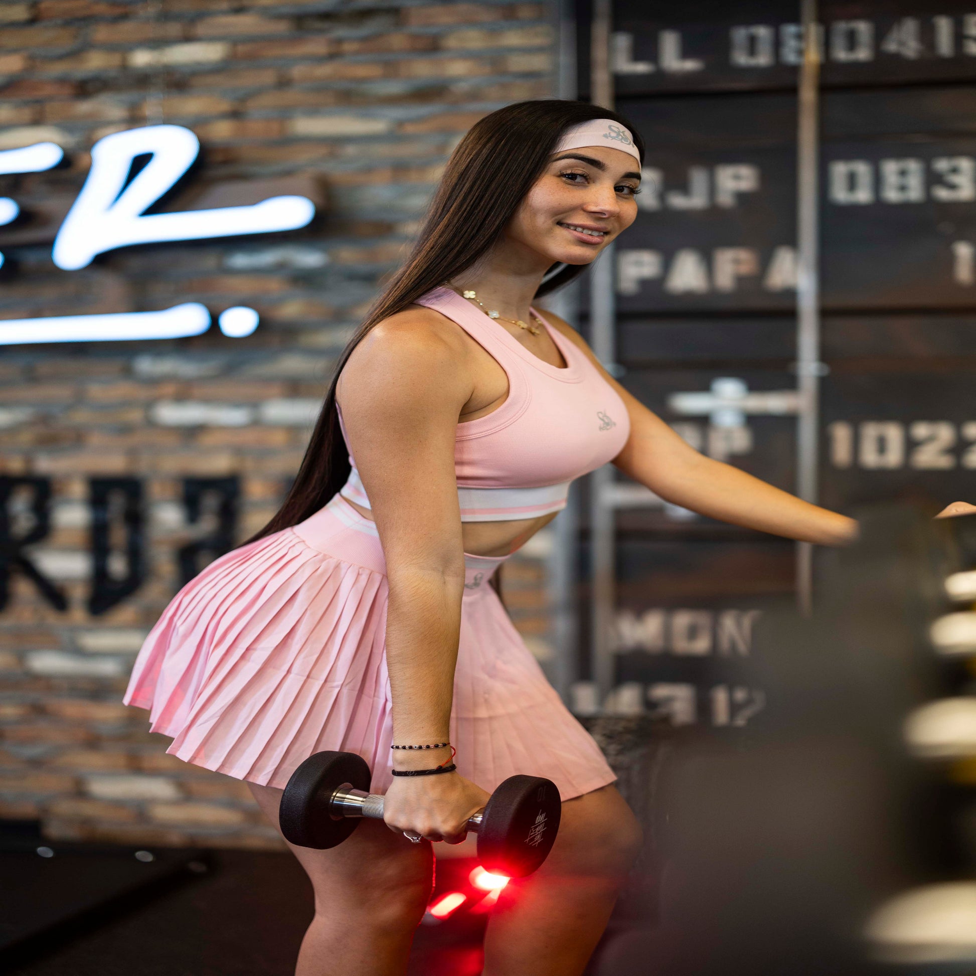 Entrena con estilo y comodidad con este conjunto deportivo en tono rosa pastel.